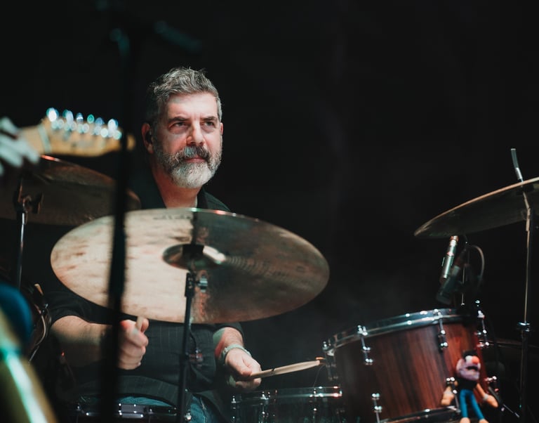 Born in Italy, Massimo Savo's musical journey began amidst the rhythms and sounds of the mid-1980s. He started as a percussionist in an Italian singer-songwriter band, where he infused original compositions with his rhythm. With a strong thirst for sonic exploration, Savo transitioned to the drums, developing a distinct musical identity influenced by contemporary sounds of punk, rock, and metal. Behind his self-crafted drum kit, he embarked on musical experiments, always aiming at pushing the boundaries of traditional sounds. He expanded his sonic research by crafting custom drum sets himself, which ultimately led to the establishment of his own brand in 1989: essebi drum. As of the 1990s, Savo ventured into fusion and jazz but also into classical music, weaving intricate rhythms and melodies into a tapestries of sound. In the late 1990s, he established a recording studio, contributing to multiple music productions. In 2016, restless to explore new horizons, Savo decided to move and make Luxembourg his permanent home, where he was quickly integrated in the music scene of Luxembourg and the Greater Region.